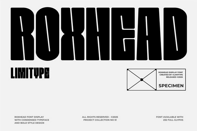 فونت مدرن Roxhead یک فونت شهری مدرن با سبکی فشرده و جزئیات کوچک در پیشخوان است. این فونت برای تیترها، پوسترها، مجلات و کالاهایی که قصد دارند مدرن و الهام گرفته از فضای شهری به نظر برسند، کاملاً مناسب است.