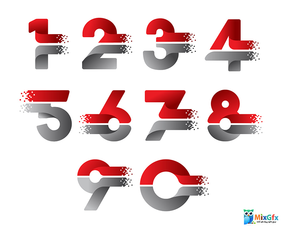 دانلود مجموعه‌ اعداد دو رنگ انگلیسی گرافیکی