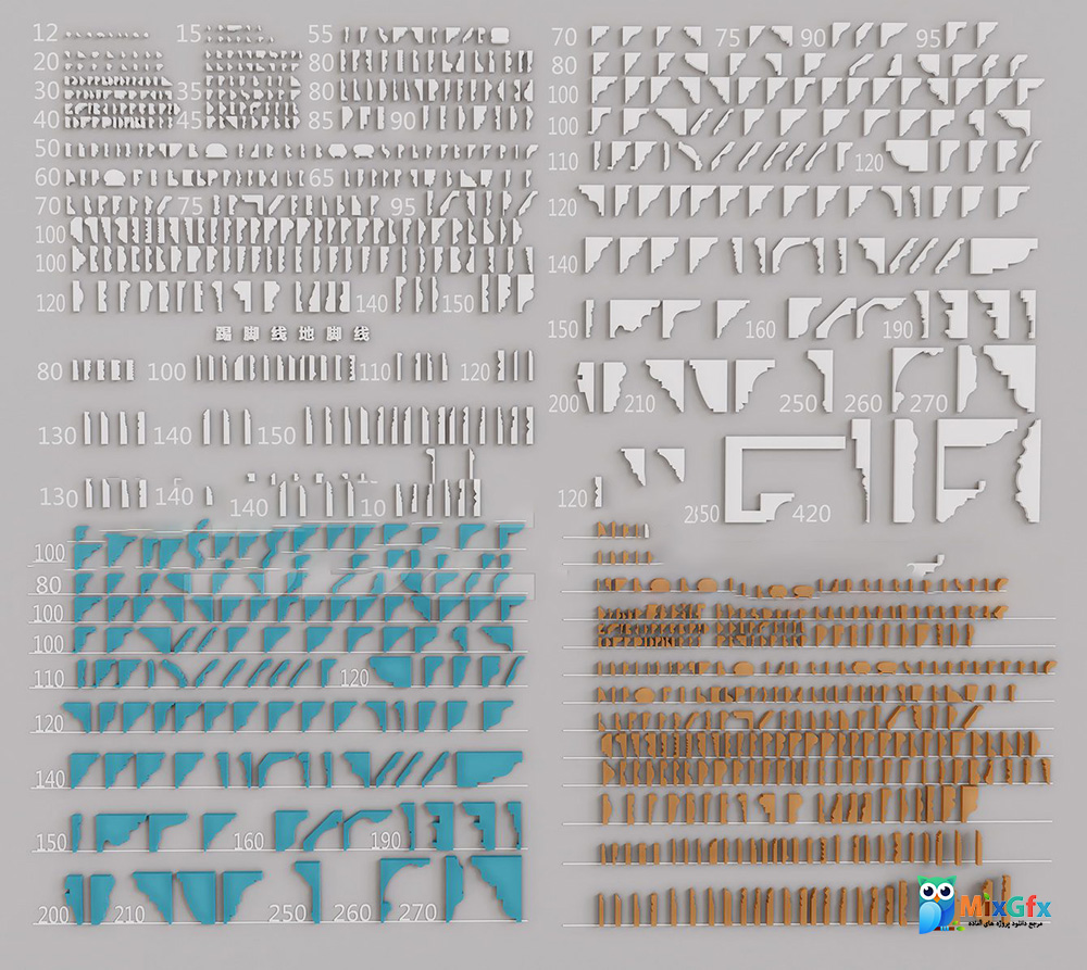 مجموعه تزئینی قرنیز و قالب‌ کلاسیک برای سقف‌ها و دیوارها ساختمان شامل آبجکت های با کیفیت بسیار بالا از تزئینات کلاسیک میباشد. که دارای تعداد زیاد مدل مختلف میباشد و تقریبا تمامی آبجکت های مورد نیاز در طراحی سقف . دیوار ها داخلی ساختمان از قبیل : انواع آبجکت قرنیز و قالب کلاسیک در طراحی داخلی مورد استفاده میباشد .