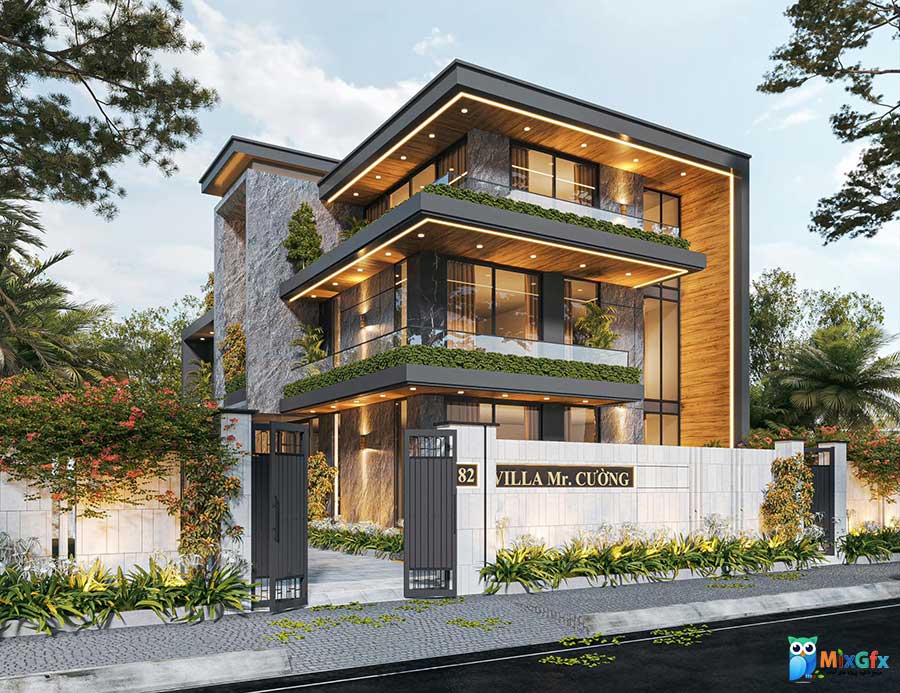 مدل نمای بیرونی ویلا SketchUp برای معماران و طراحانی که به دنبال تجسم حرفهای هستند ایدهآل است . و امکان ویرایش آسان و برنامهریزی کارآمد پروژه را فراهم میکند. و در نهایت زمان و هزینه را بهینه میکند. یک طراحی معماری مدرن و لوکس را به نمایش میگذارد که با خطوط جسورانه و زیباییشناسی هماهنگ خود، توجه را به خود جلب میکند. این ویلا دارای یک سازه سه طبقه شیک است که در میان فضای سبز سرسبز قرار گرفته و ترکیبی یکپارچه از طبیعت و ظرافت معاصر را ارائه میدهد. این مدل با نمای شیشهای گسترده، نور طبیعی کافی را تضمین میکند، در حالی که بافتهای سنگ و چوب، نمایی گرم و دلنشین را فراهم میکنند.