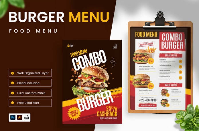 دانلود منوی غذا فست فود برگر Burger Food Menu