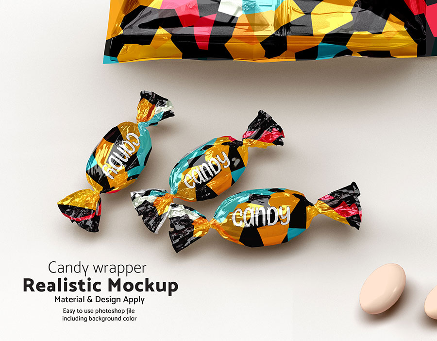 موکاپ آبنبات واقعی حرفهای با کیفیت بالا برای نمونه کارها، ویترین، ارائه، پوستر، تبلیغات و موارد دیگر. به سرعت و به راحتی با استفاده از اشیاء هوشمند قابل تنظیم است.