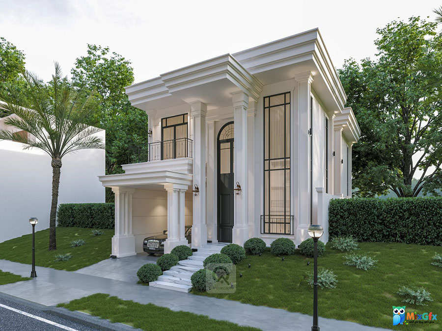 دانلود نمای بیرونی نئو کلاسیک ویلا